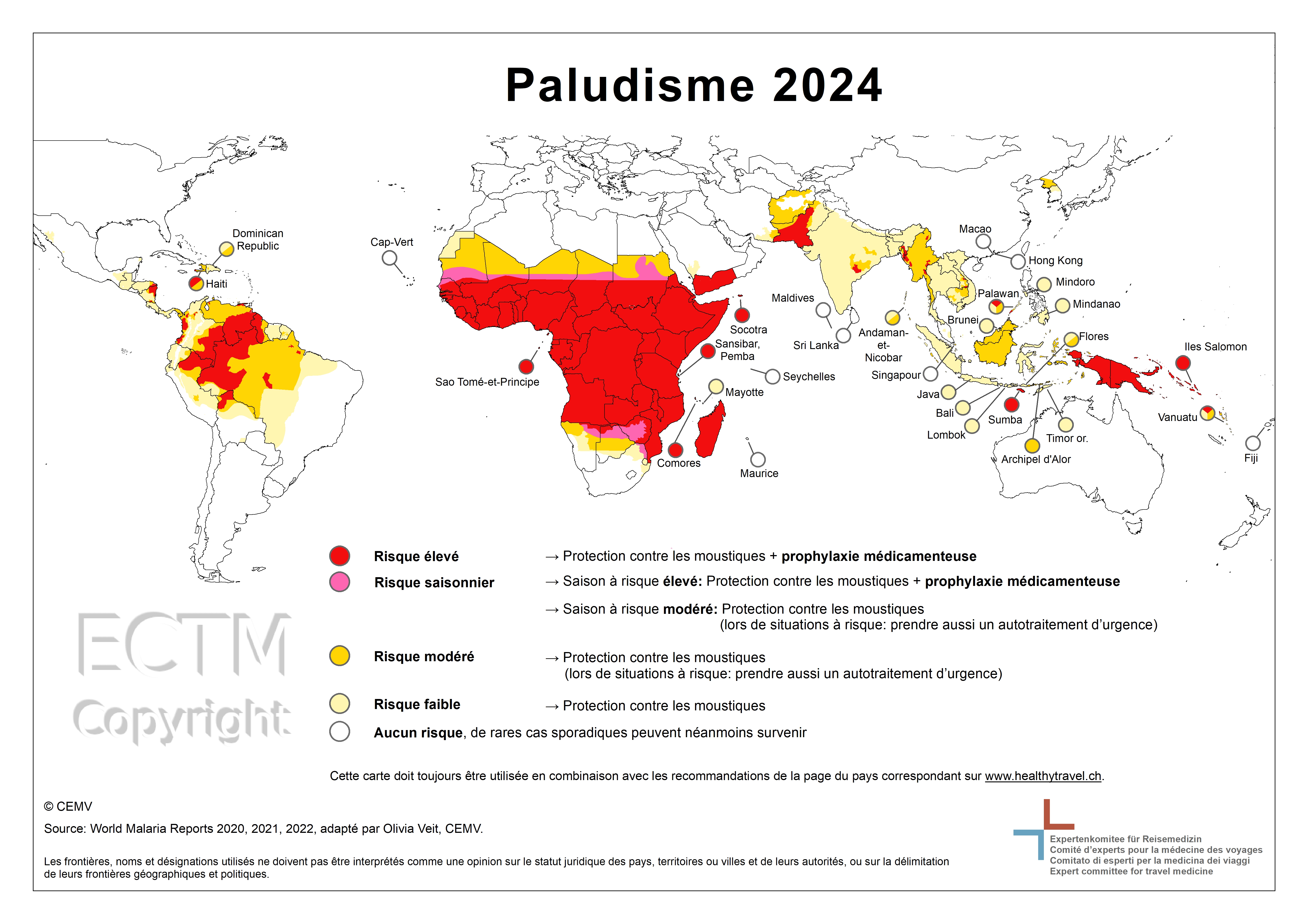 Toute fièvre pendant ou après un séjour en zone d’endémie du paludisme est une urgence absolue ! Un diagnostic et un traitement précoces sont nécessaires, car la santé des personnes atteintes de paludisme peut se détériorer très rapidement. Ainsi, en cas de fièvre supérieure à 37,5° (mesurée avec un thermomètre), il est primordial de confirmer un diagnostic de paludisme par une analyse sanguine dans les 24 heures, que vous ayez pris un traitement prophylactique ou non. Rendez-vous chez un médecin ou dans un hôpital en mesure de réaliser ce type d’analyse. Si l’analyse se révèle négative et que la fièvre persiste, il est nécessaire de répéter une analyse le lendemain.